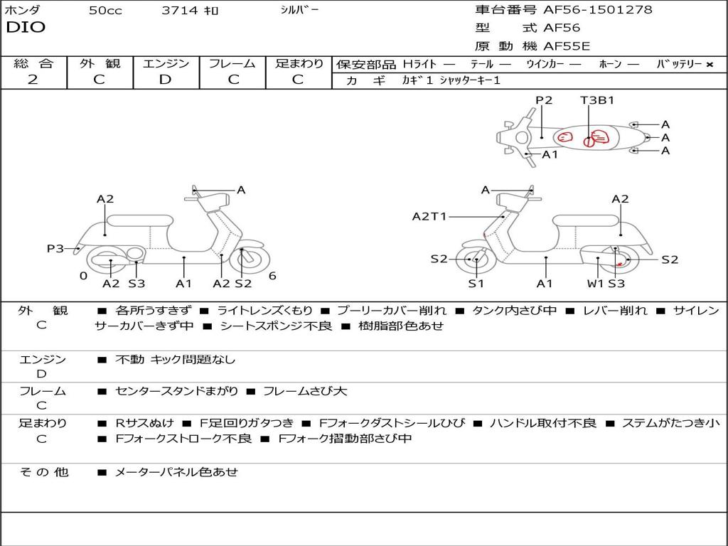 | Номер рамы / VIN | AF56-1501278 |