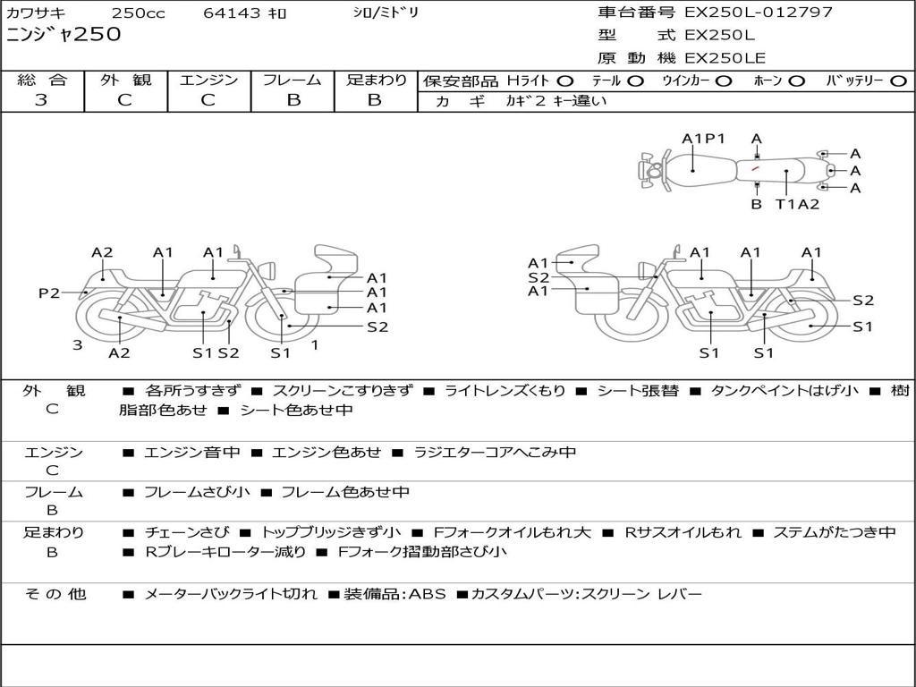 | Номер рамы / VIN | EX250L-012797 |