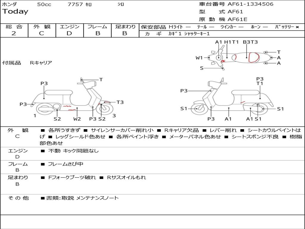 | Номер рамы / VIN | AF61-1334506 |