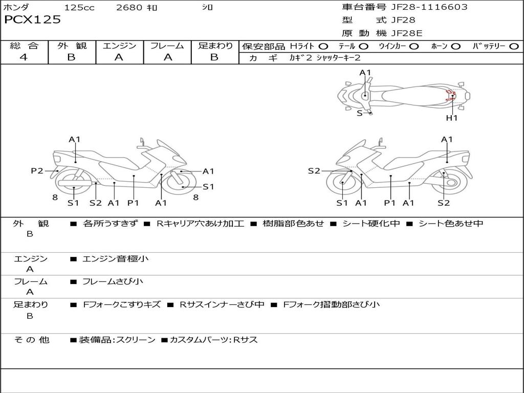 | Номер рамы / VIN | JF28-1116603 |