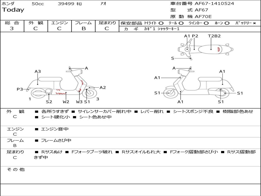 | Номер рамы / VIN | AF67-1410524 |