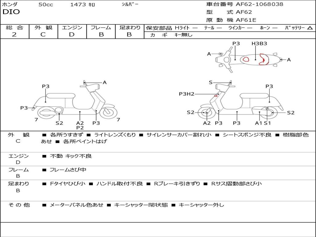 | Номер рамы / VIN | AF62-1068038 |