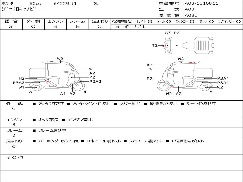 | Номер рамы / VIN | TA03-1316811 |