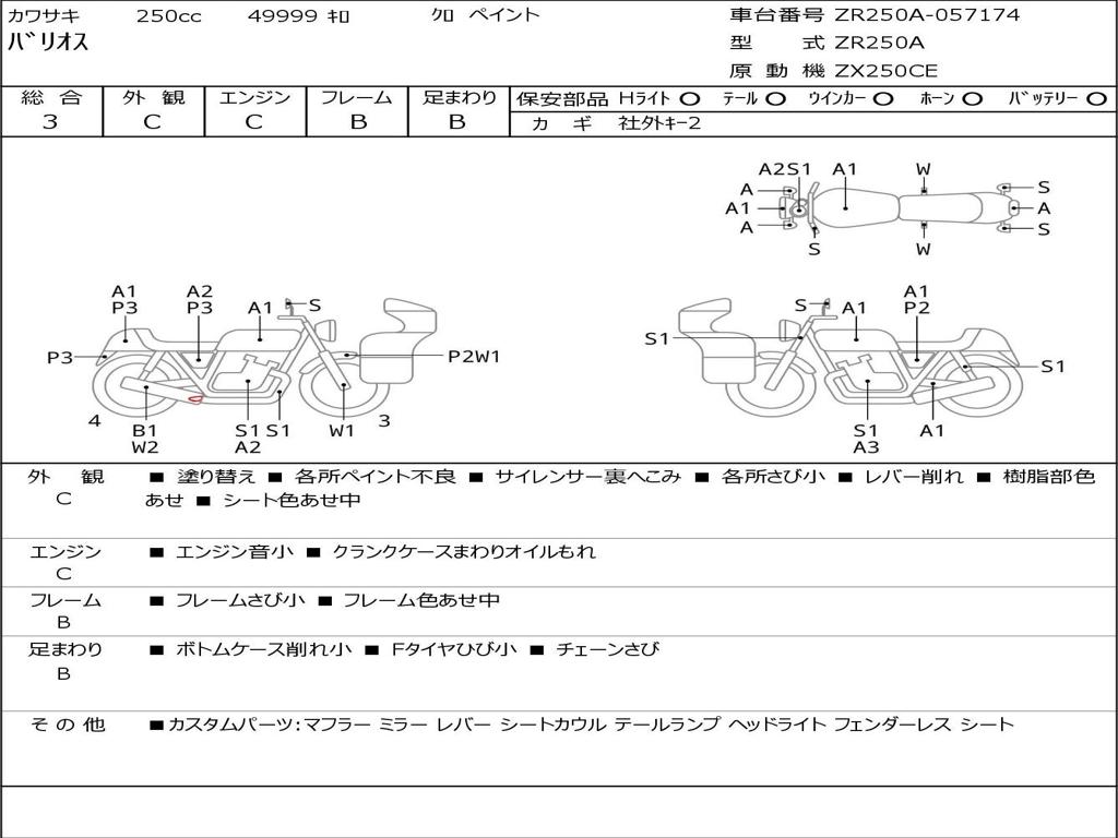 | Номер рамы / VIN | ZR250A-057174 |