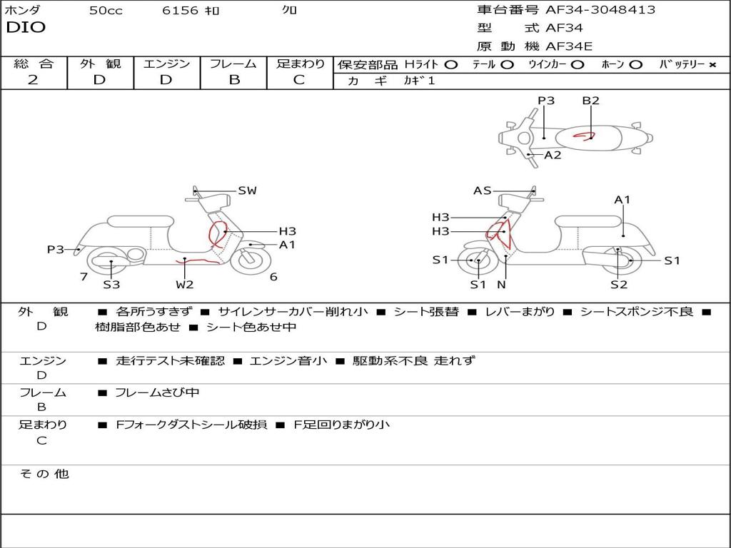 | Номер рамы / VIN | AF34-3048413 |