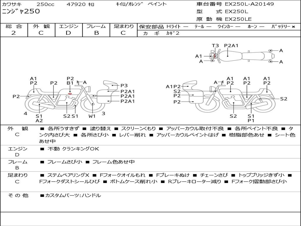 | Номер рамы / VIN | EX250L-A20149 |