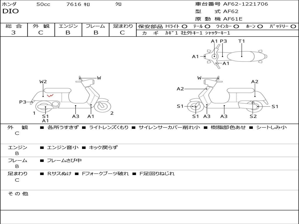 | Номер рамы / VIN | AF62-1221706 |