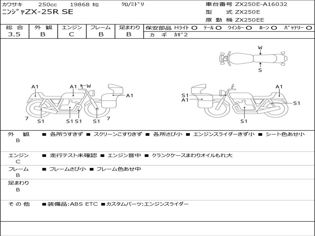 | Номер рамы / VIN | ZX250E-A16032 |