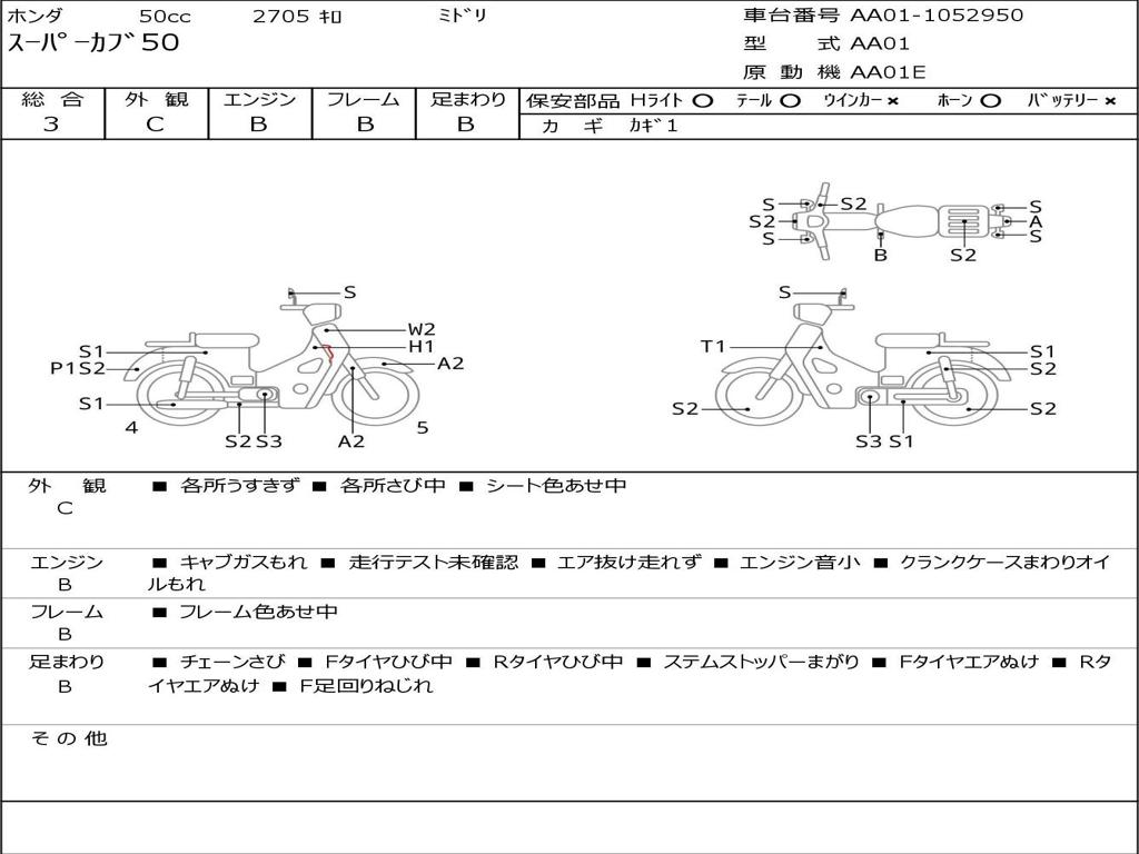 | Номер рамы / VIN | AA01-1052950 |
