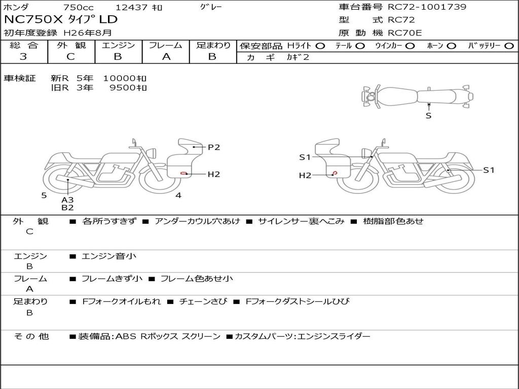 | Номер рамы / VIN | RC72-1001739 |