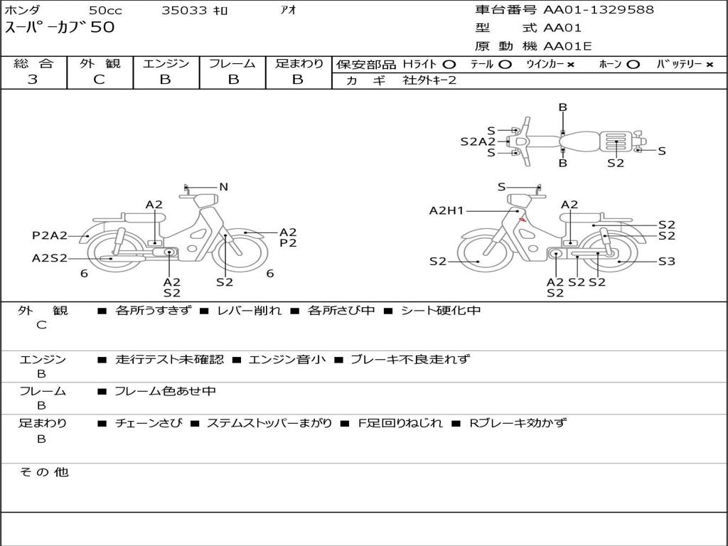 | Номер рамы / VIN | AA01-1329588 |