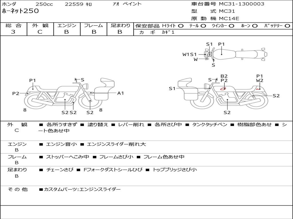 | Номер рамы / VIN | MC31-1300003 |