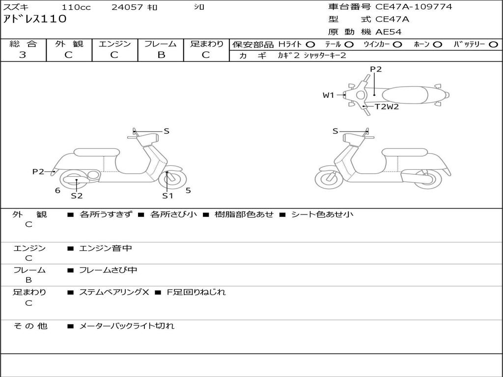 | Номер рамы / VIN | CE47A-109774 |