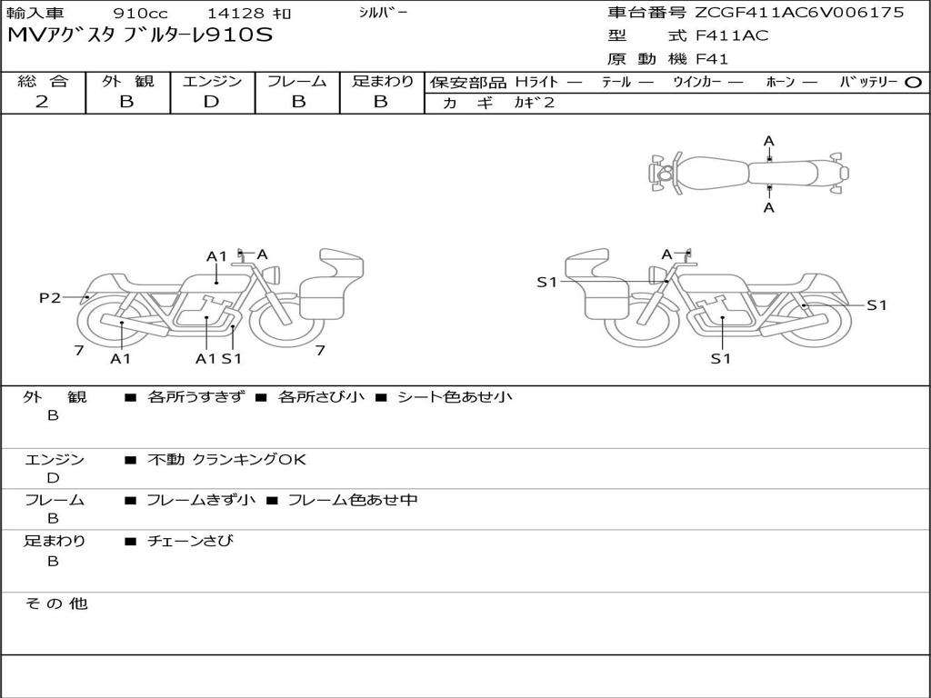 | Номер рамы / VIN | ZCGF411AC6V006175 |