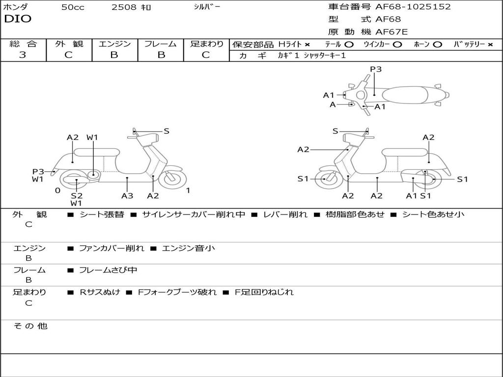 | Номер рамы / VIN | AF68-1025152 |