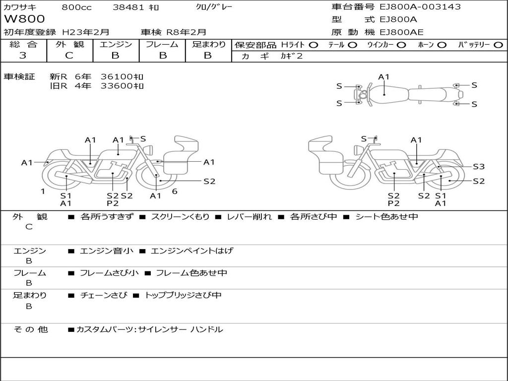 | Номер рамы / VIN | EJ800A-003143 |