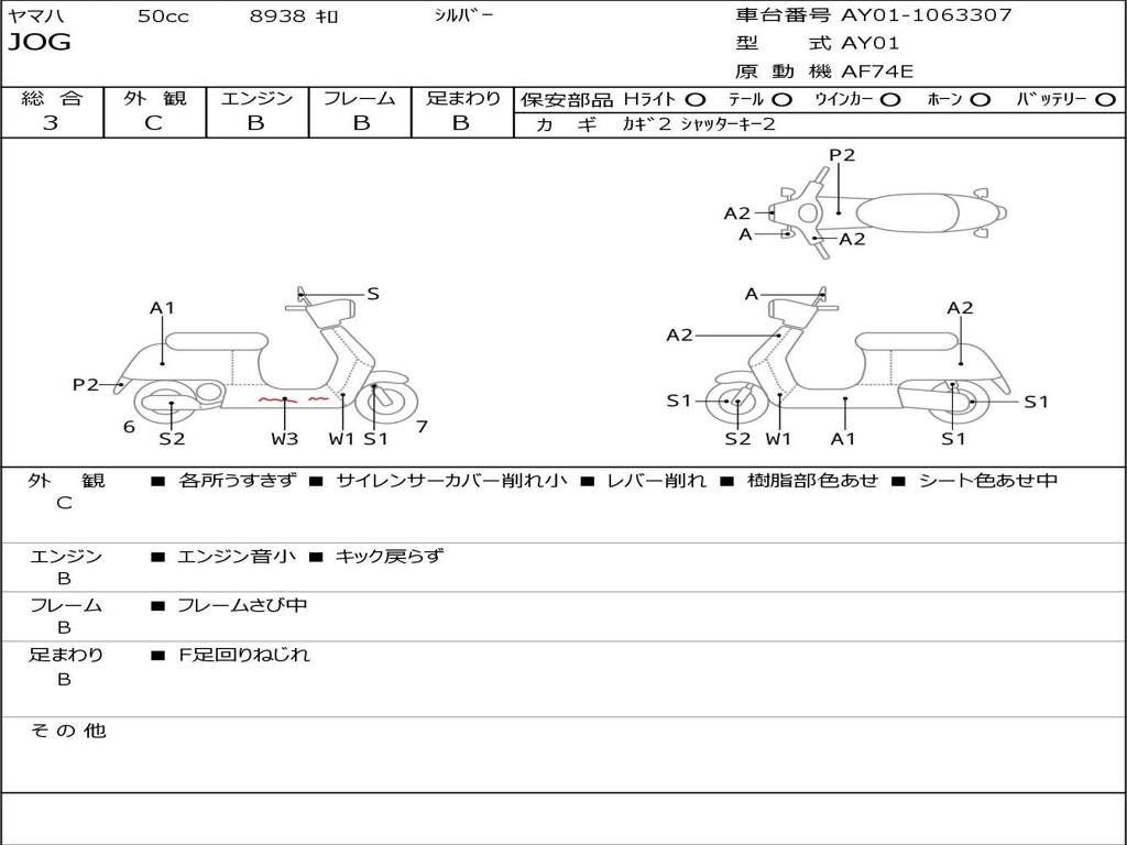 | Номер рамы / VIN | AY01-1063307 |