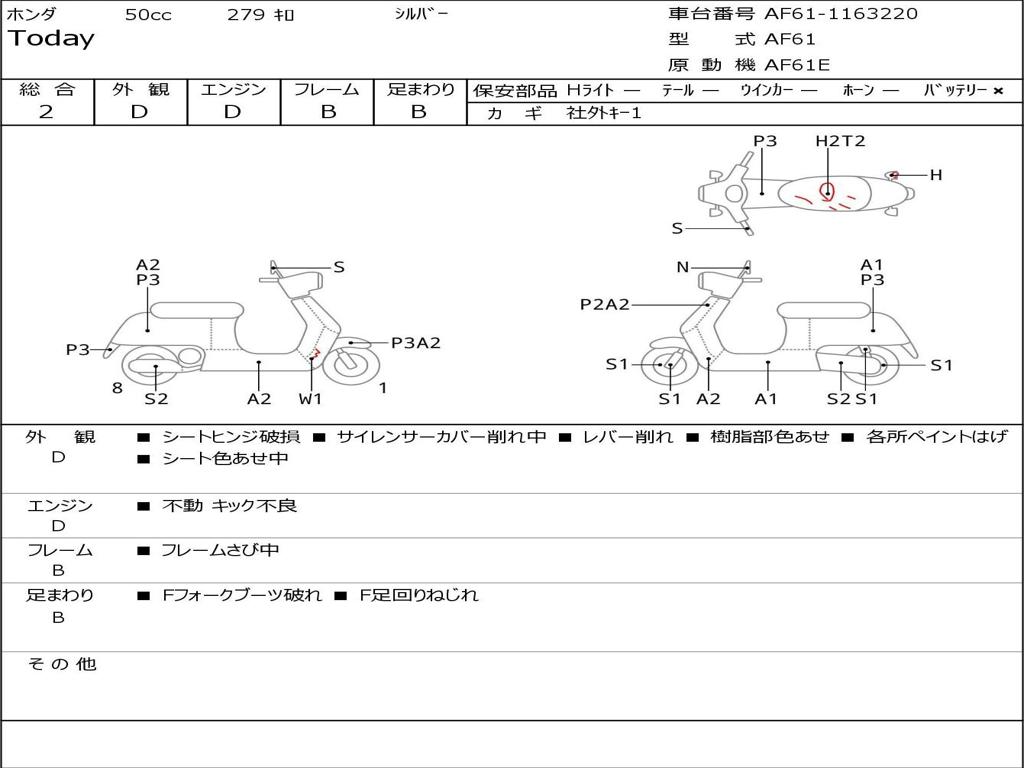 | Номер рамы / VIN | AF61-1163220 |