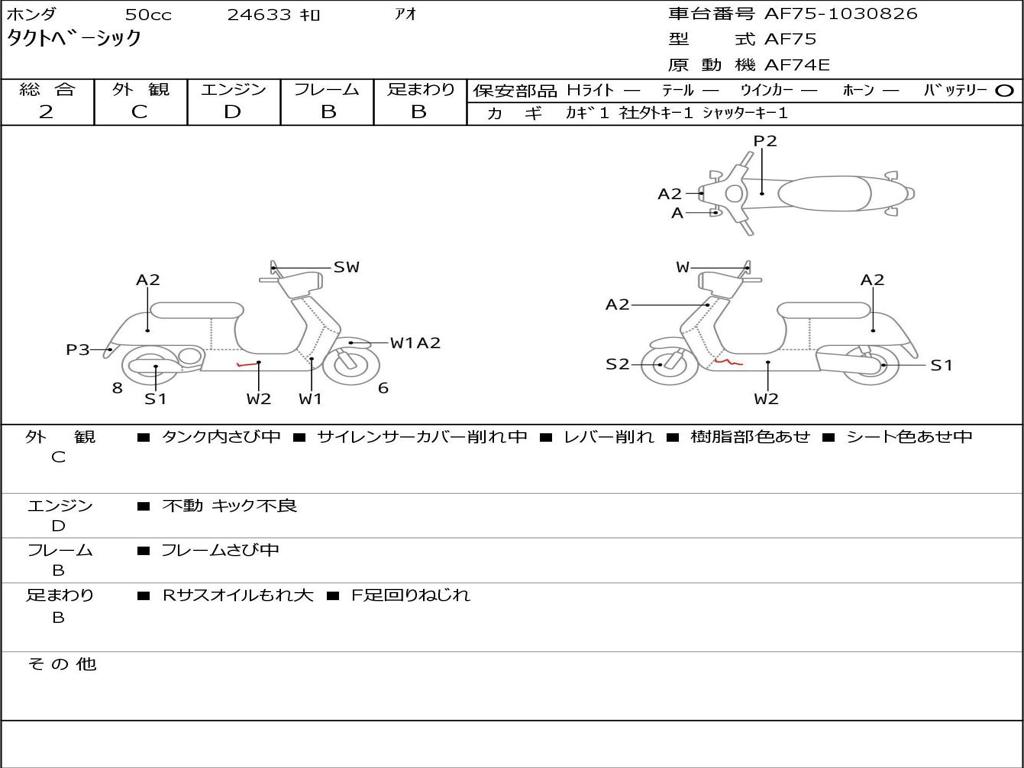 | Номер рамы / VIN | AF75-1030826 |