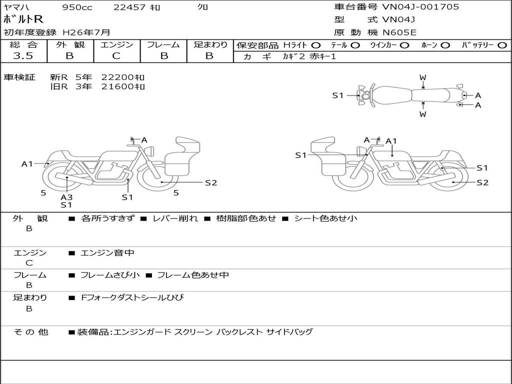 | Номер рамы / VIN | VN04J-001705 |