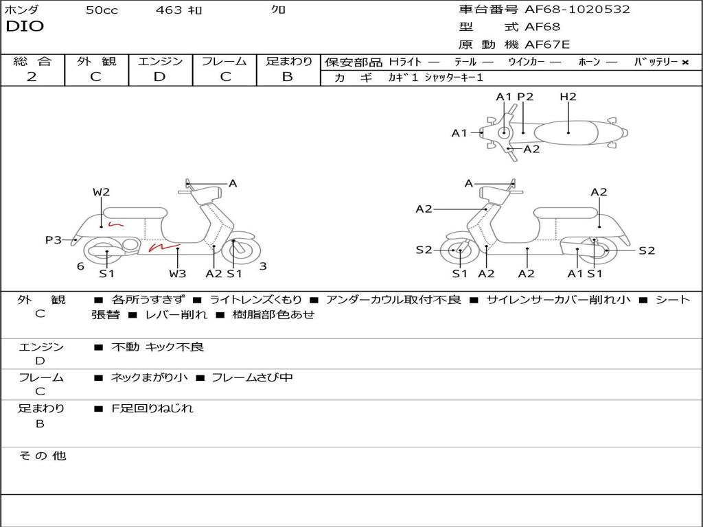 | Номер рамы / VIN | AF68-1020532 |