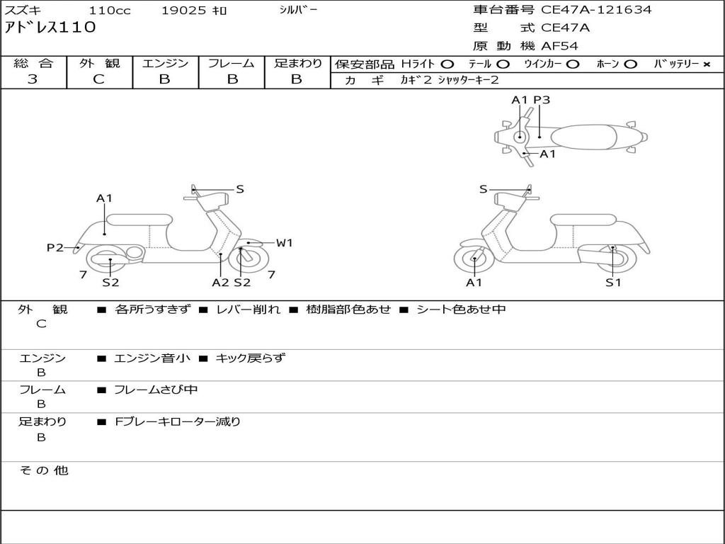 | Номер рамы / VIN | CE47A-121634 |