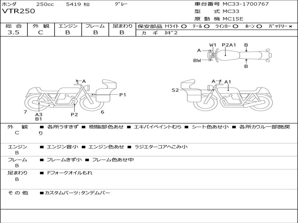 | Номер рамы / VIN | MC33-1700767 |