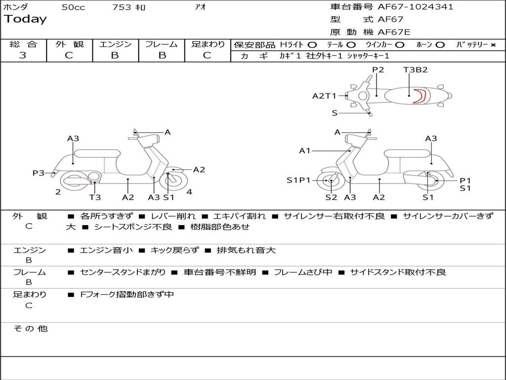 | Номер рамы / VIN | AF67-1024341 |