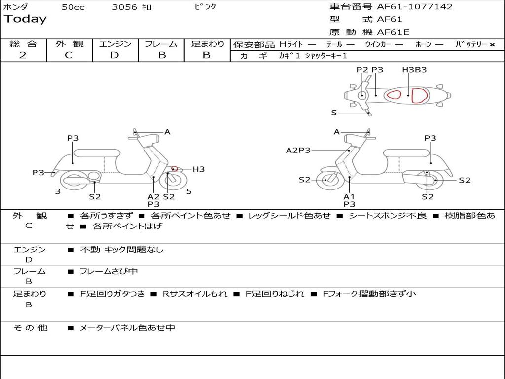 | Номер рамы / VIN | AF61-1077142 |