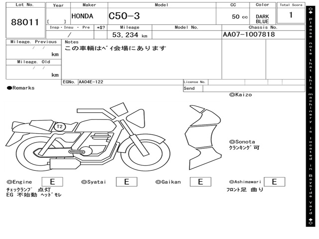 | Номер рамы / VIN | AA07-1007818 |