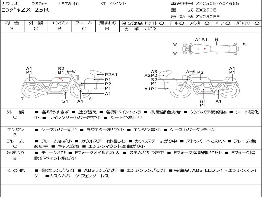 | Номер рамы / VIN | ZX250E-A04665 |