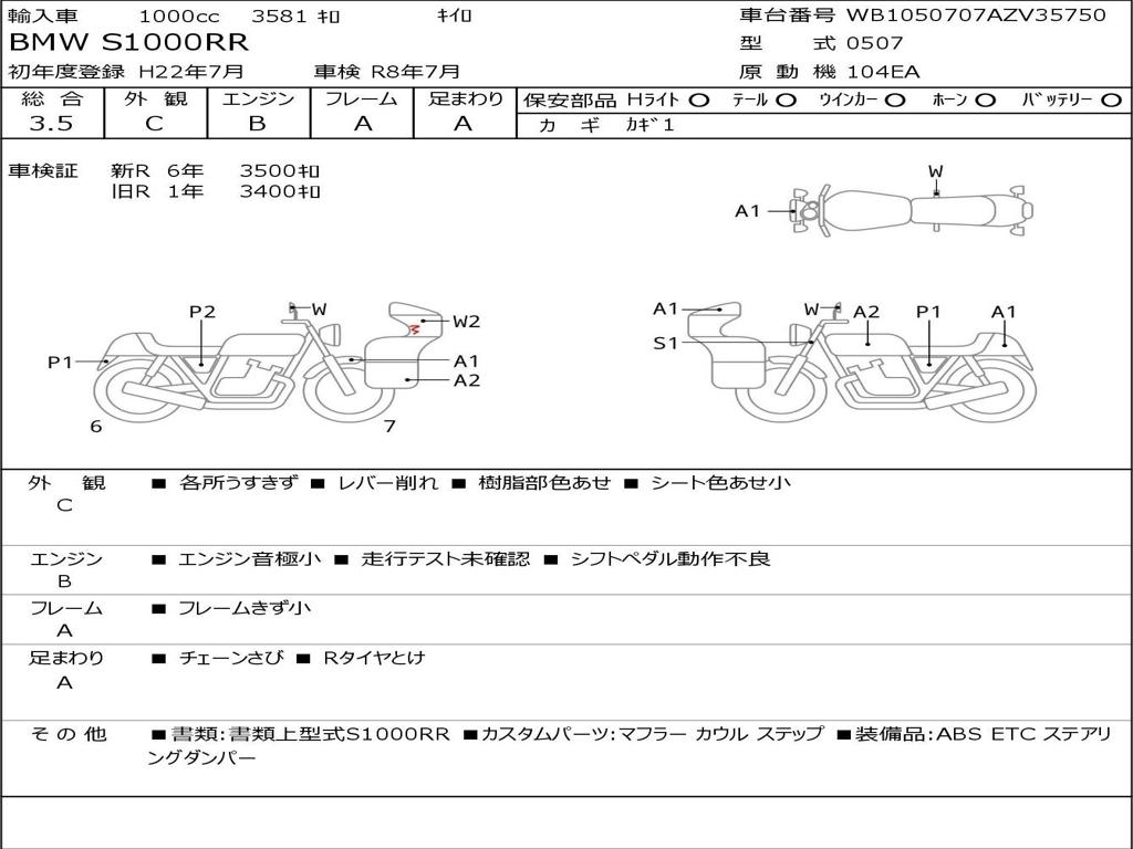| Номер рамы / VIN | WB1050707AZV35750 |