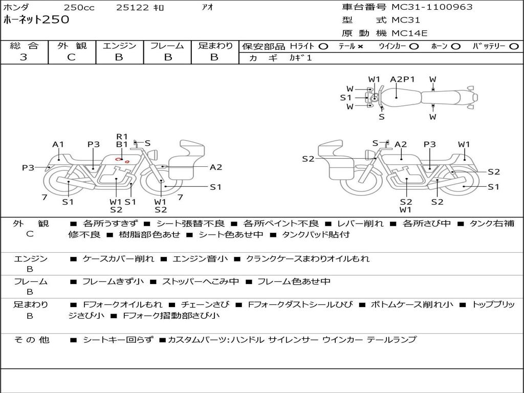 | Номер рамы / VIN | MC31-1100963 |