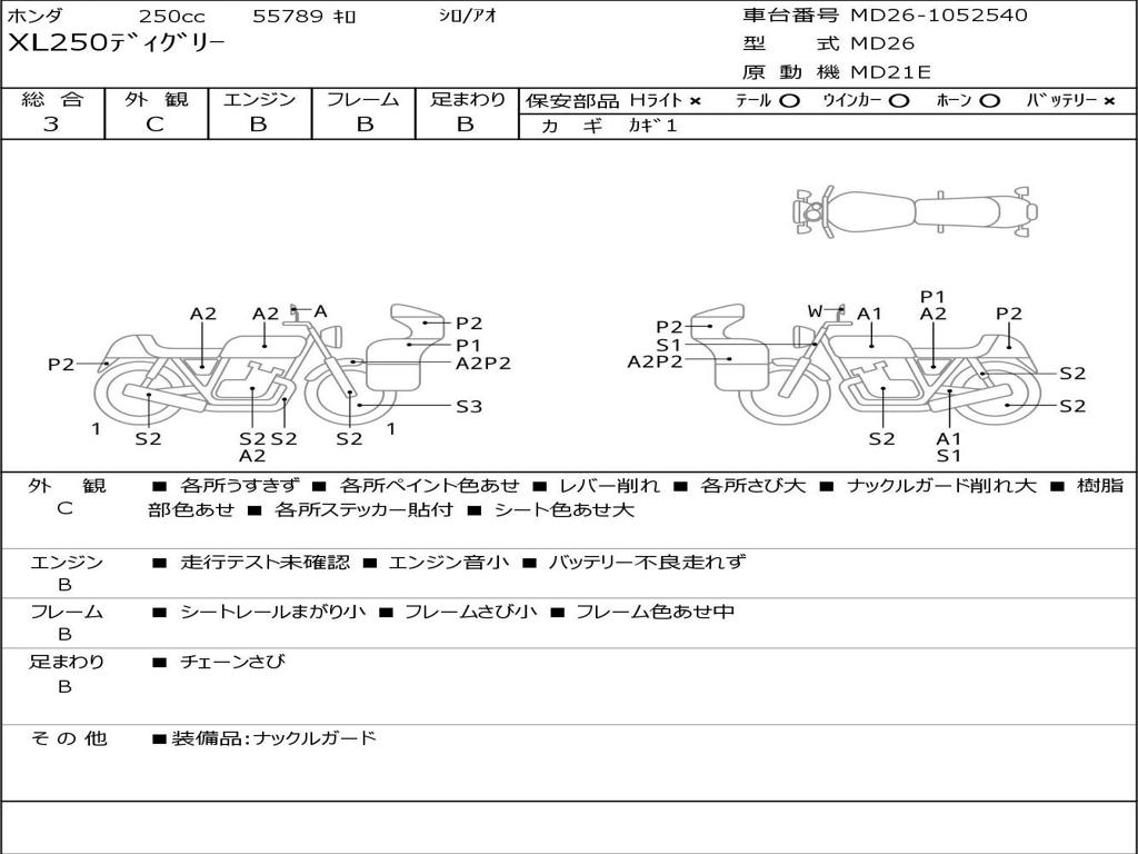 | Номер рамы / VIN | MD26-1052540 |