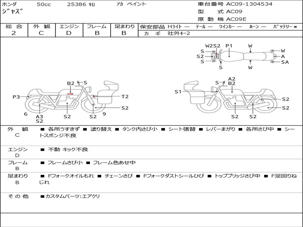| Номер рамы / VIN | AC09-1304534 |