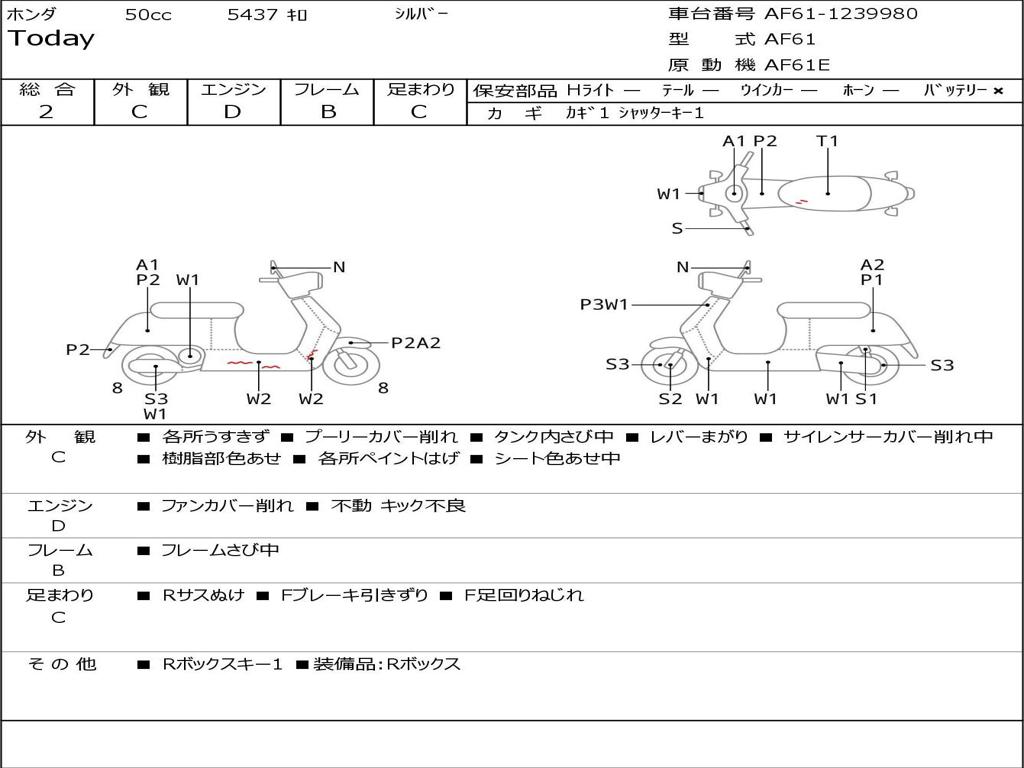 | Номер рамы / VIN | AF61-1239980 |