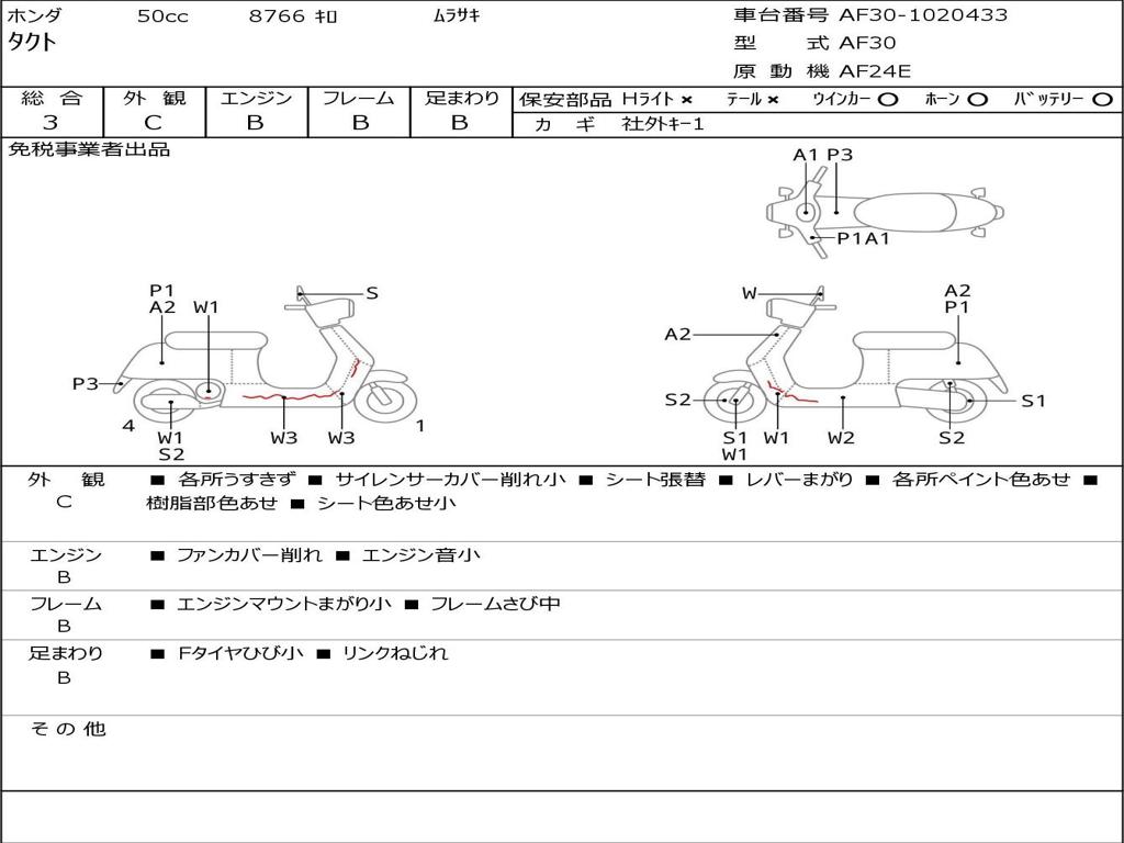 | Номер рамы / VIN | AF30-1020433 |