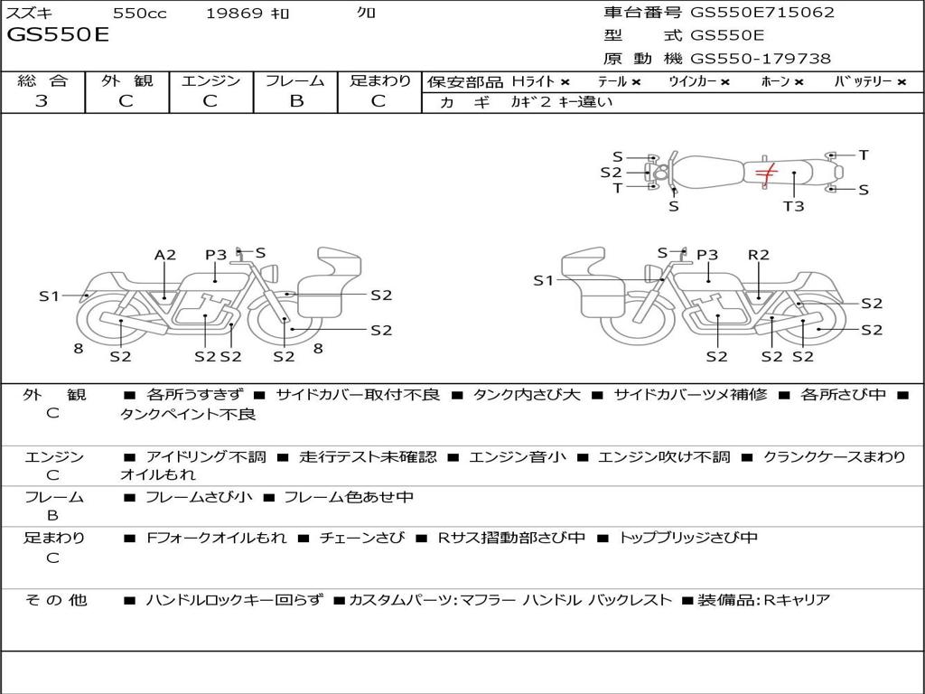 | Номер рамы / VIN | GS550E715062 |