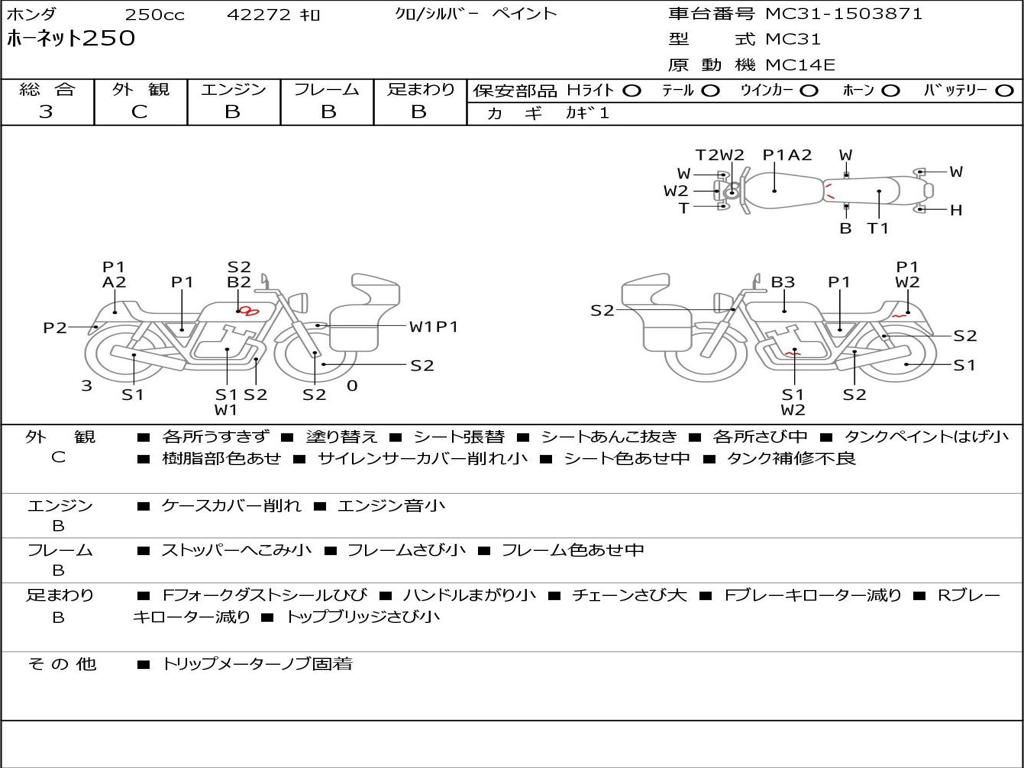 | Номер рамы / VIN | MC31-1503871 |
