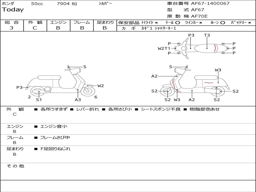 | Номер рамы / VIN | AF67-1400067 |