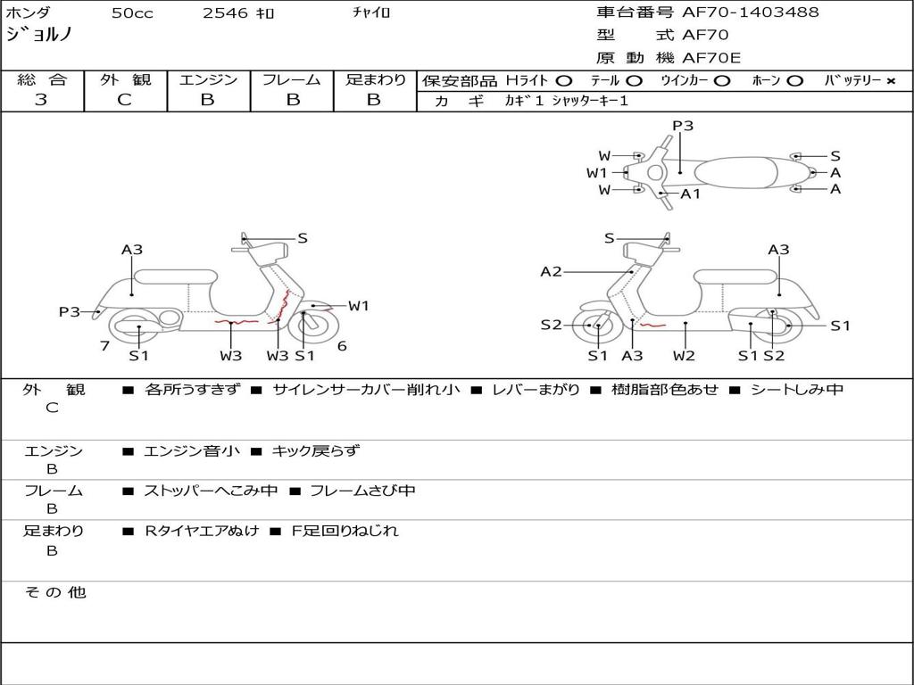 | Номер рамы / VIN | AF70-1403488 |