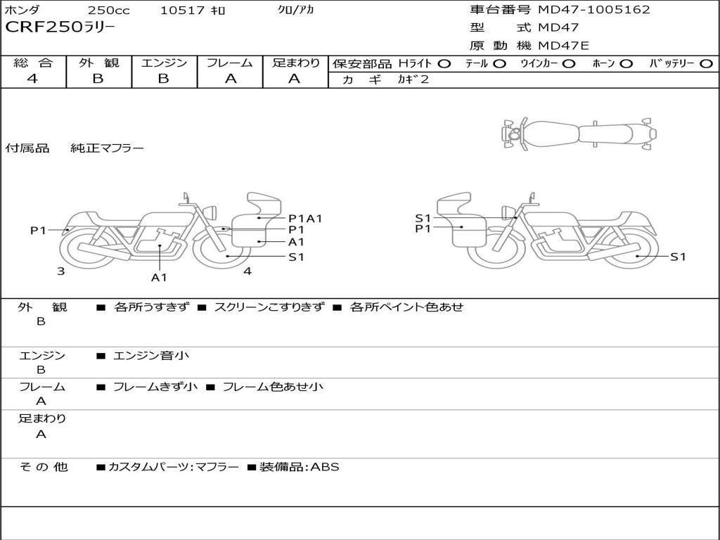 | Номер рамы / VIN | MD47-1005162 |