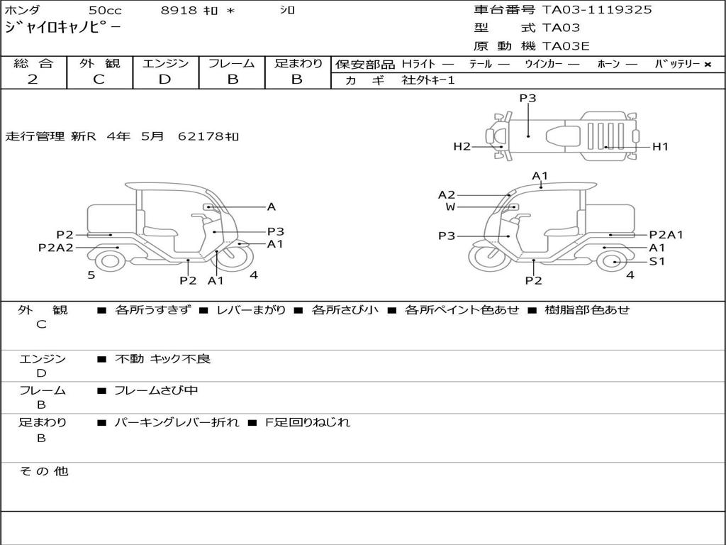 | Номер рамы / VIN | TA03-1119325 |