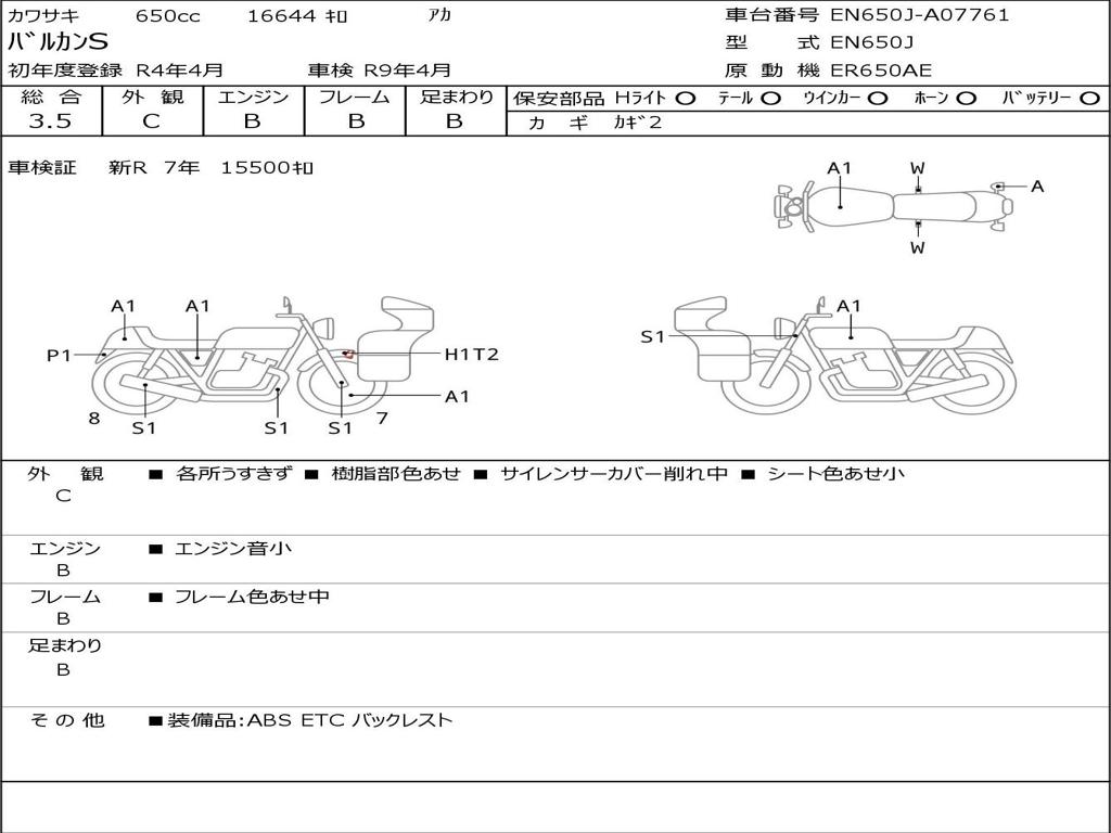 | Номер рамы / VIN | EN650J-A07761 |