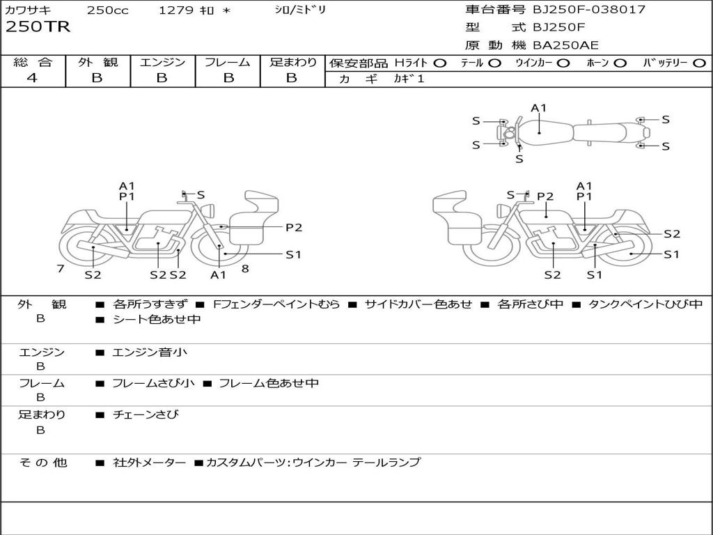 | Номер рамы / VIN | BJ250F-038017 |
