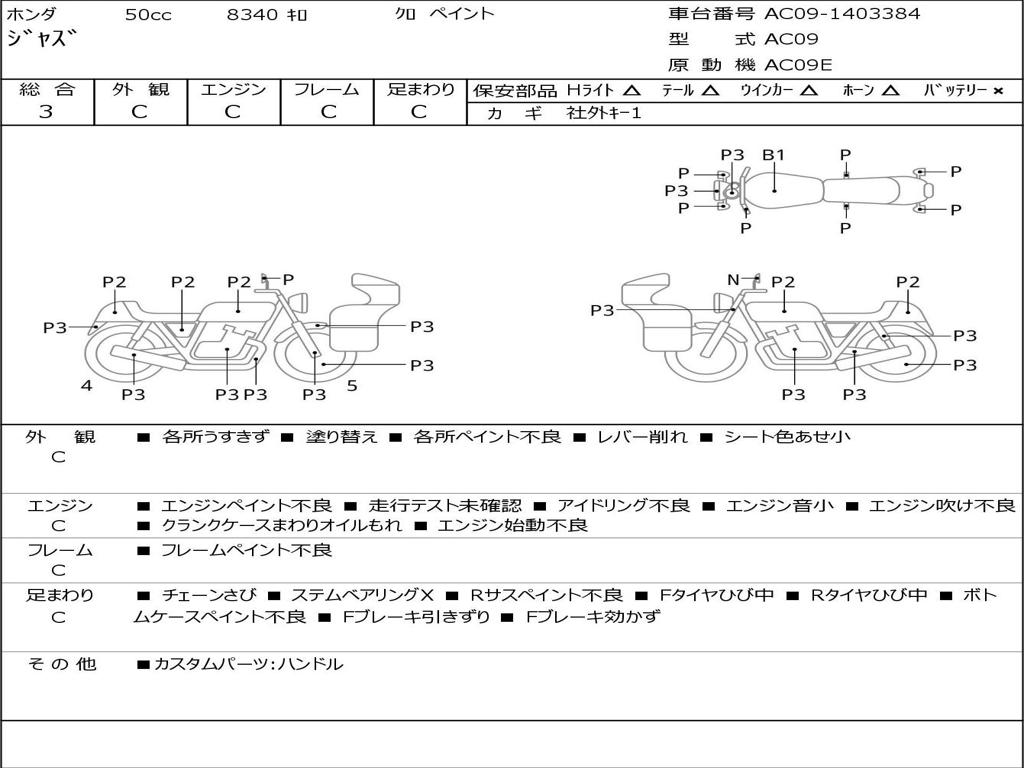 | Номер рамы / VIN | AC09-1403384 |