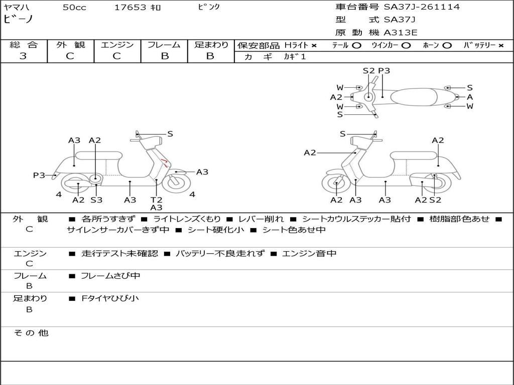 | Номер рамы / VIN | SA37J-261114 |