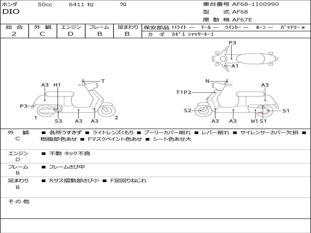 | Номер рамы / VIN | AF68-1100990 |