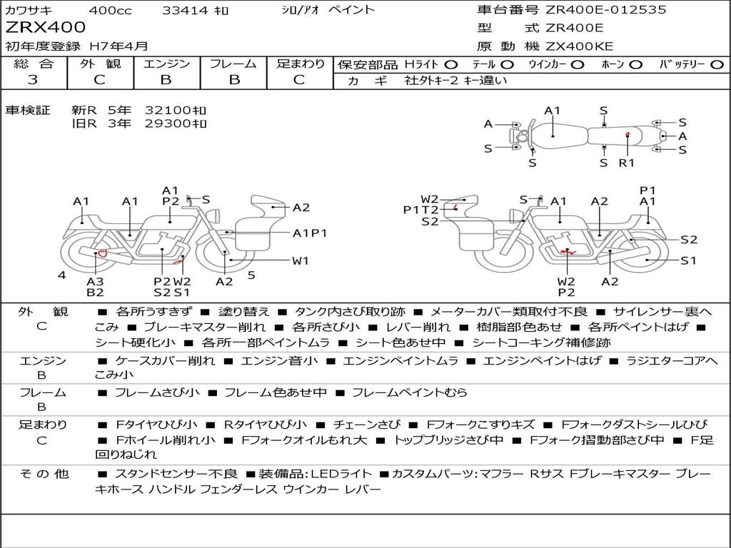 | Номер рамы / VIN | ZR400E-012535 |