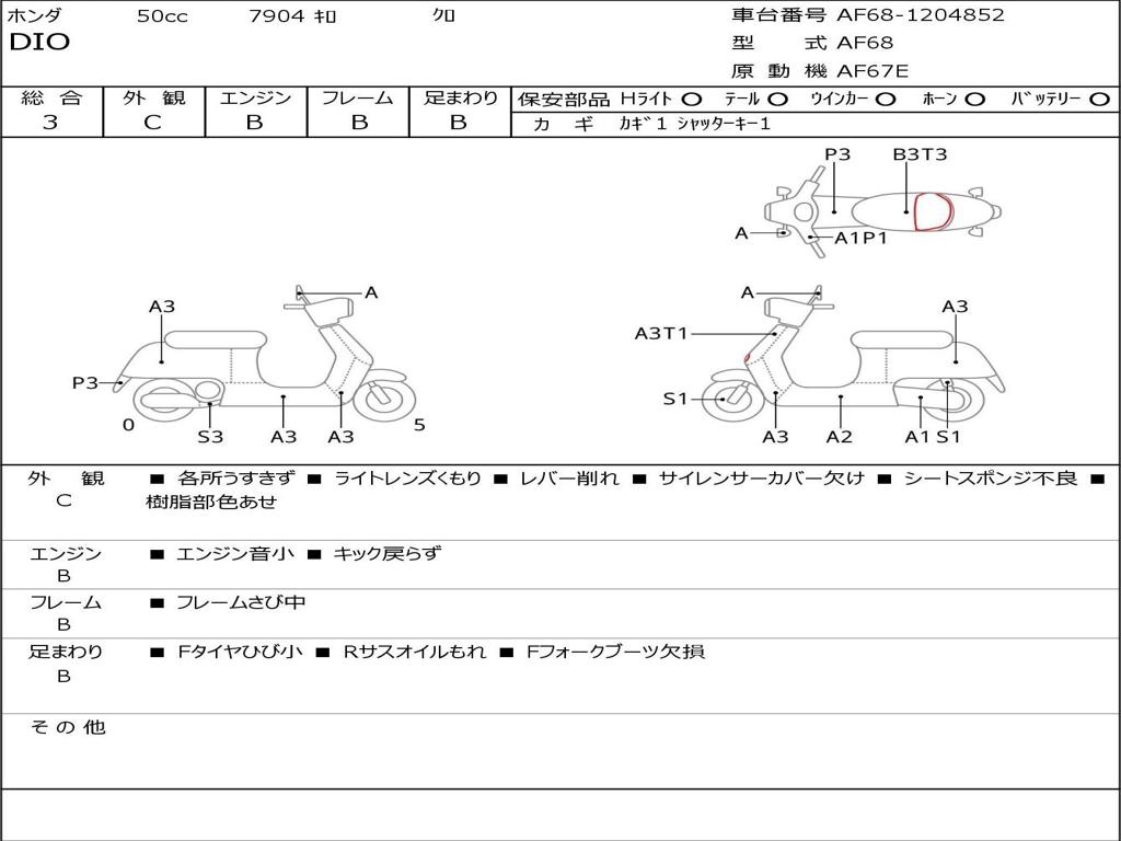 | Номер рамы / VIN | AF68-1204852 |
